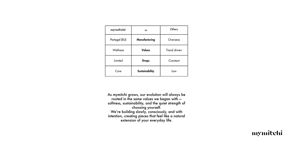At mymitchi, we take pride in creating all our products in Europe, with every piece using recycled fabric from Italy, expertly crafted in Portugal. Known for its rich textile heritage, Portugal ensures the highest standards of quality and craftsmanship in every stitch.
